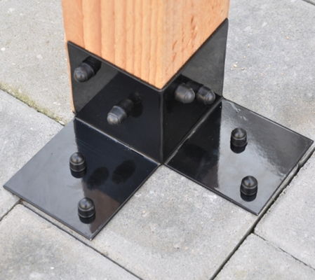 les supports d'angle de l'extérieur de la pergola. Les paquets comprennent 2 supports, 16 fermetures, 12 boulons, 12 bouchons et 12 anneaux.